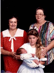 Below is a picture of my sister Autumn Ireland holding me and I made a doodle and everyone was laughing. My Grandma Christine Church Edwards is in the red dress & My Grandma Grace Ellsworth Ireland is in the Print shirt this was taken on Sept. 9, 1990 I was 2 weeks old.