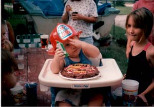 My first Birthday Party and Cake I liked Firetrucks and this is my cuz Nicki. My first steps are on my moms web page.