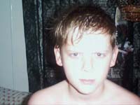 This is me with wet hair after my shower. Bad sister picking on me.