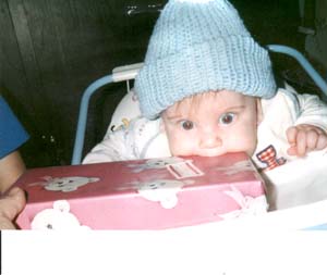 I was 4 months old here and cutting teeth I got my first two bottom teeth at 5 months old.