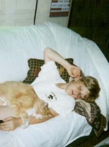 This is my cat his name is "PEACHES" he is old we are "CRASHED OUT"